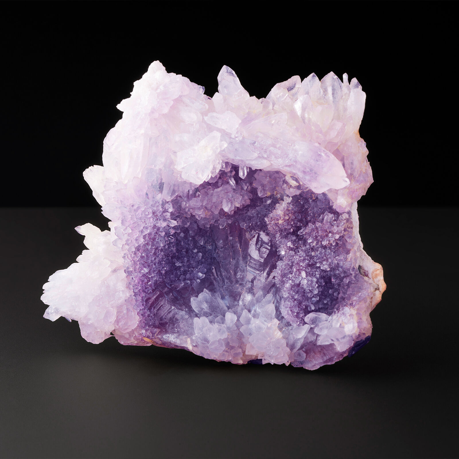 How many shades of amethyst are out there? Its spectacular hues range from delicate lilac to lavender and grape, right through to shades of violet with reddish and blue hues, and even dark purple leaning towards brown. Amethyst owes its diverse colour range to the presence of iron and trace elements in its crystals, as well as the unique geological conditions where it forms.