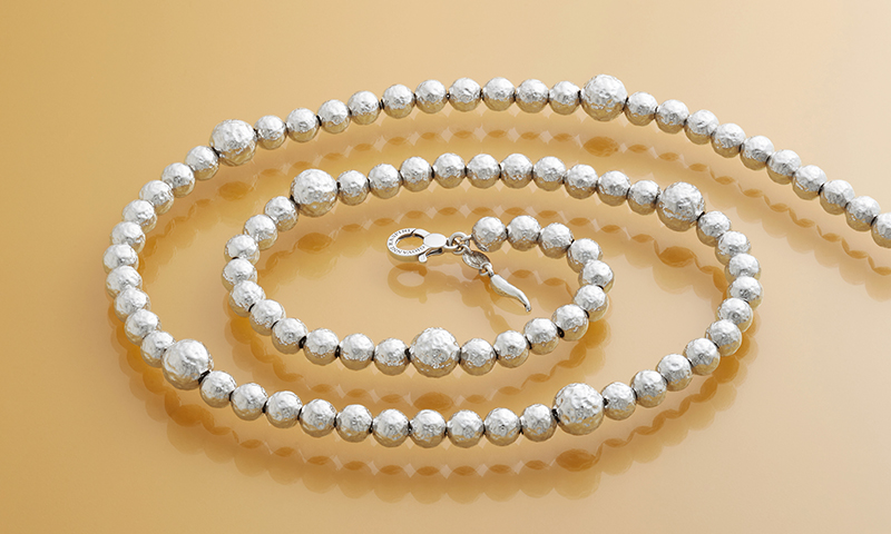 Giovanni Raspini's long necklaces capture the essence of nature with fluid and original lines, while the fascinating forms reflect the energy of geometry. Handmade in house, these creations seamlessly combine elegance and contemporary style.