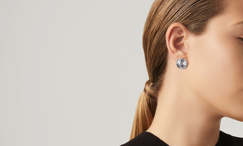 Pendientes icónicos de plata que iluminan el rostro. Texturas preciosas, creaciones poco convencionales o formas clásicas, los pendientes de botón de Giovanni Raspini sorprenden por sus diseños únicos y detalles de gran calidad.